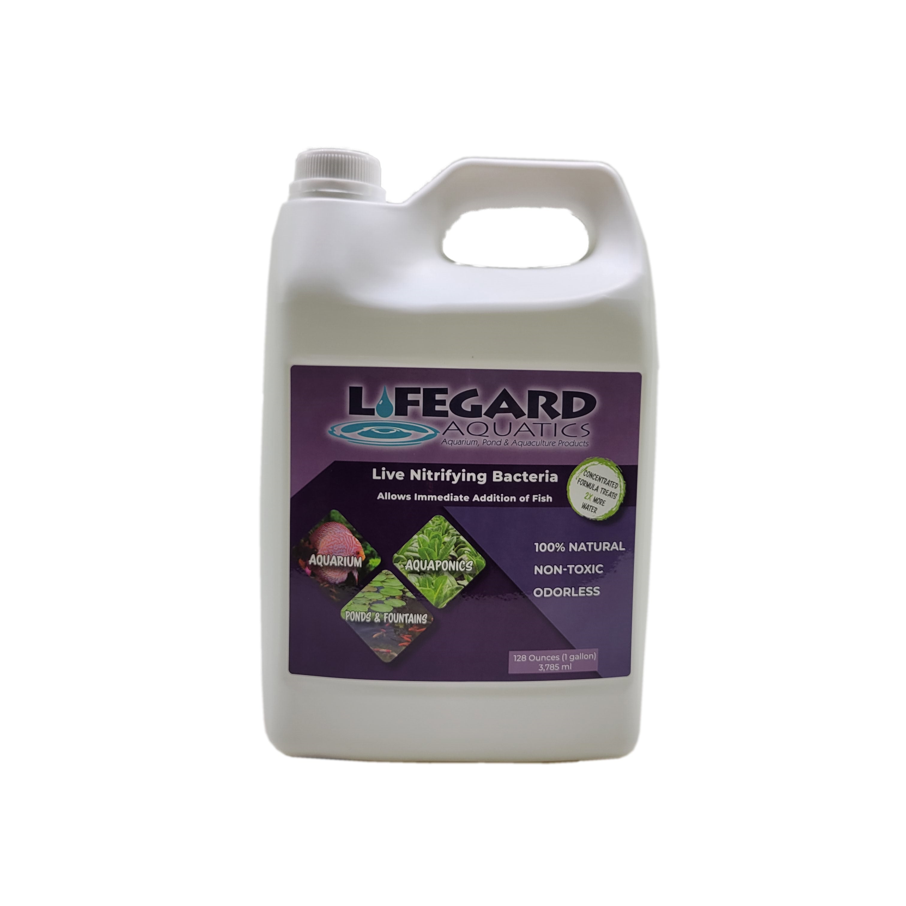 LIFEGARD® Aquatics Live Nitrifying Bacteria prevents new tank syndrome by instantly working to establish a bio-filter in newly set-up Ponds and Aquariums. Use LIFEGARD® Aquatics Live Nitrifying Bacteria to control ammonia and nitrite levels. Good for 6 months at room temperature, 1 year at 50°F. Best to keep refrigerated for longest shelf life. Live Nitrifying Bacteria - Allows Immediate Addition of Fish