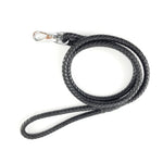 Hand Braided Dog Leash Black for Large to Medium size dogs. This is a short leash to keep the dog closer. Made of high quality leather with excellent craftmanship. The chrome clamp has a swivel connection for ease of handling.
