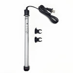 Submersible Shatterproof Quartz Heater safe for Freshwater and Saltwater tanks. Easy to set thermostat features LED Power Indicator Light showing operation. 120V/60 Hz energy efficient operation. Quartz Glass tube, 6’ cord and suction cup mounting brackets.