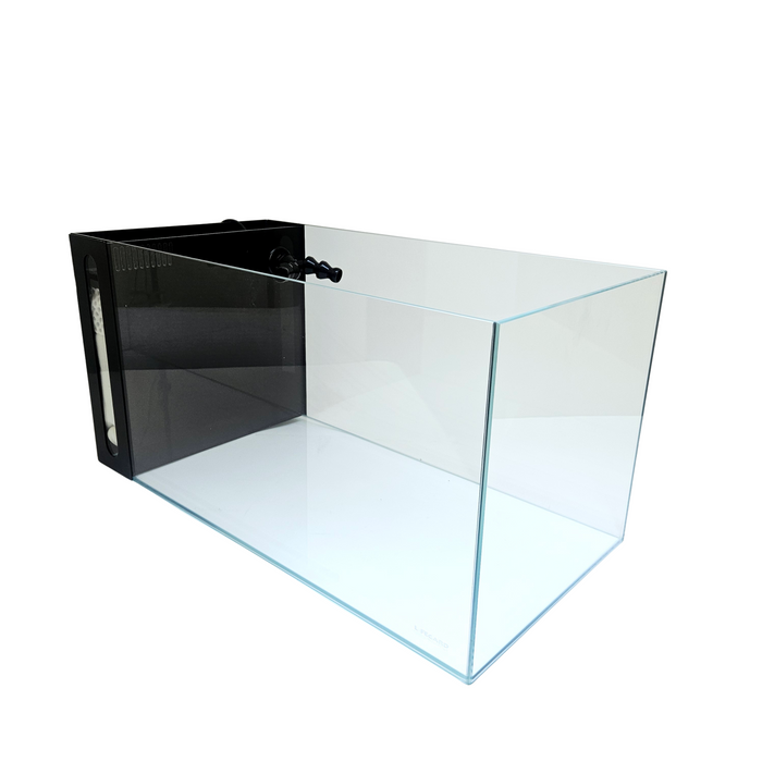 LIFEGARD® 14.26 Gallon Crystal™ Aquarium Peninsula Series - Low Iron Ultra Clear Beveled Edge Glass includes a built-in Side filter with Quiet One Pump, Easy to service Filter Sock Mechanical Filter and Multi Directional jet.