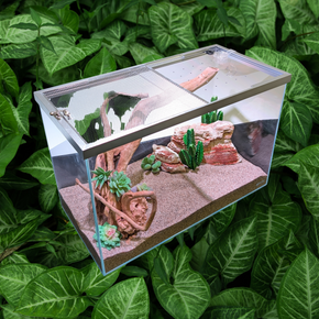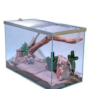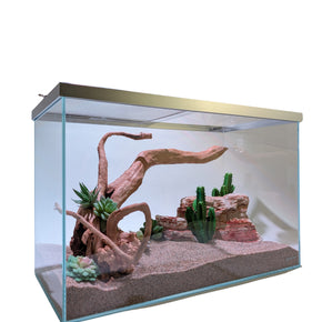 It is made with Ultra Low Iron 92% crystal clear glass as well as Clear Glass that allows you to easily combine the elements of natural earth landscapes with exotic underwater environments to make breathtaking displays and arrangements. The use of German glue on the joints makes the corners blend into the structure without restricting the view.