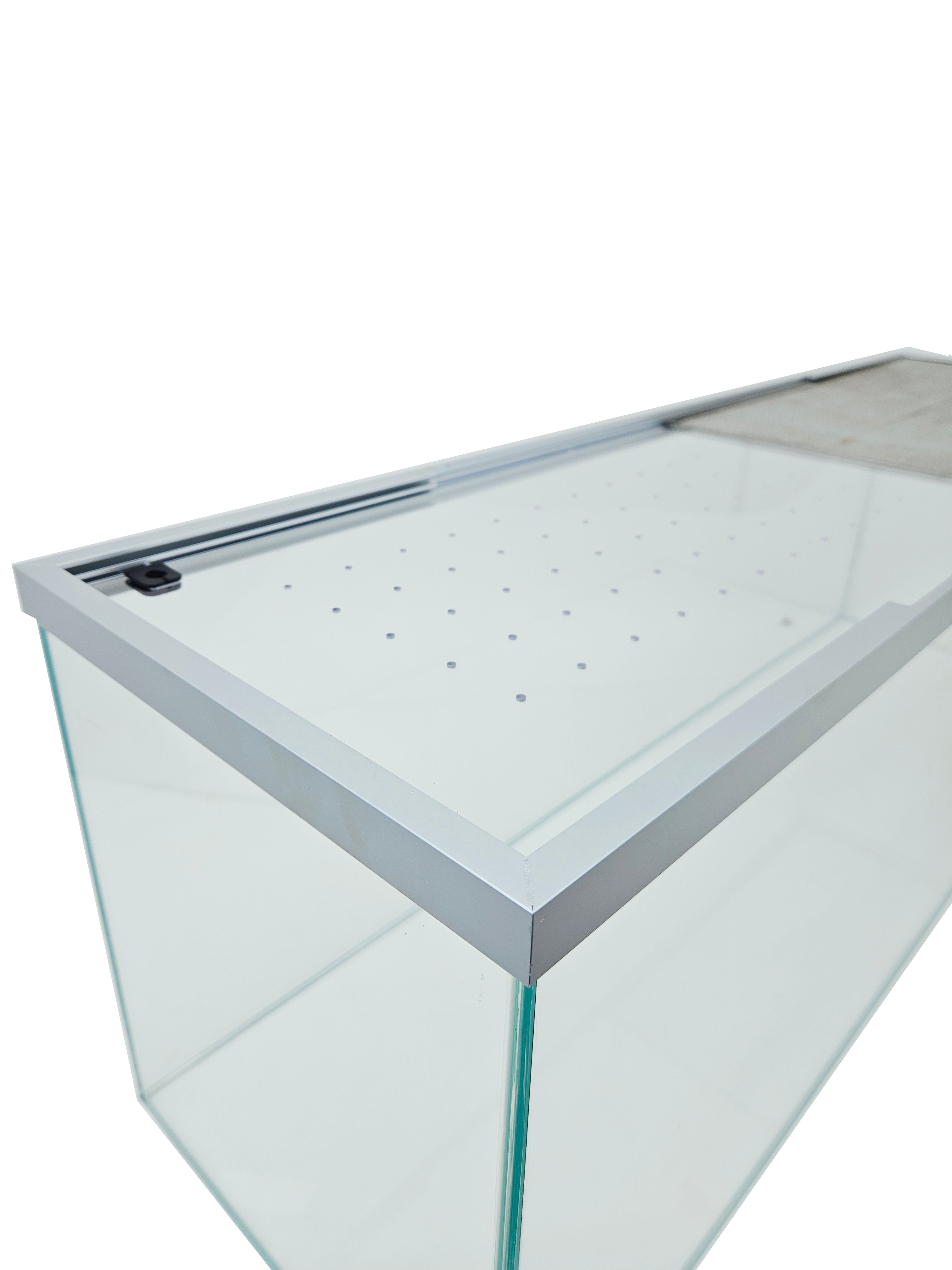 Lifegard Rimless Terrarium is made with Ultra Low Iron 92% crystal clear glass that allows you to easily combine the elements of natural earth landscapes with exotic underwater environments to make breathtaking displays and arrangements. The use of German glue on the joints makes the corners blend into the structure without restricting the view.