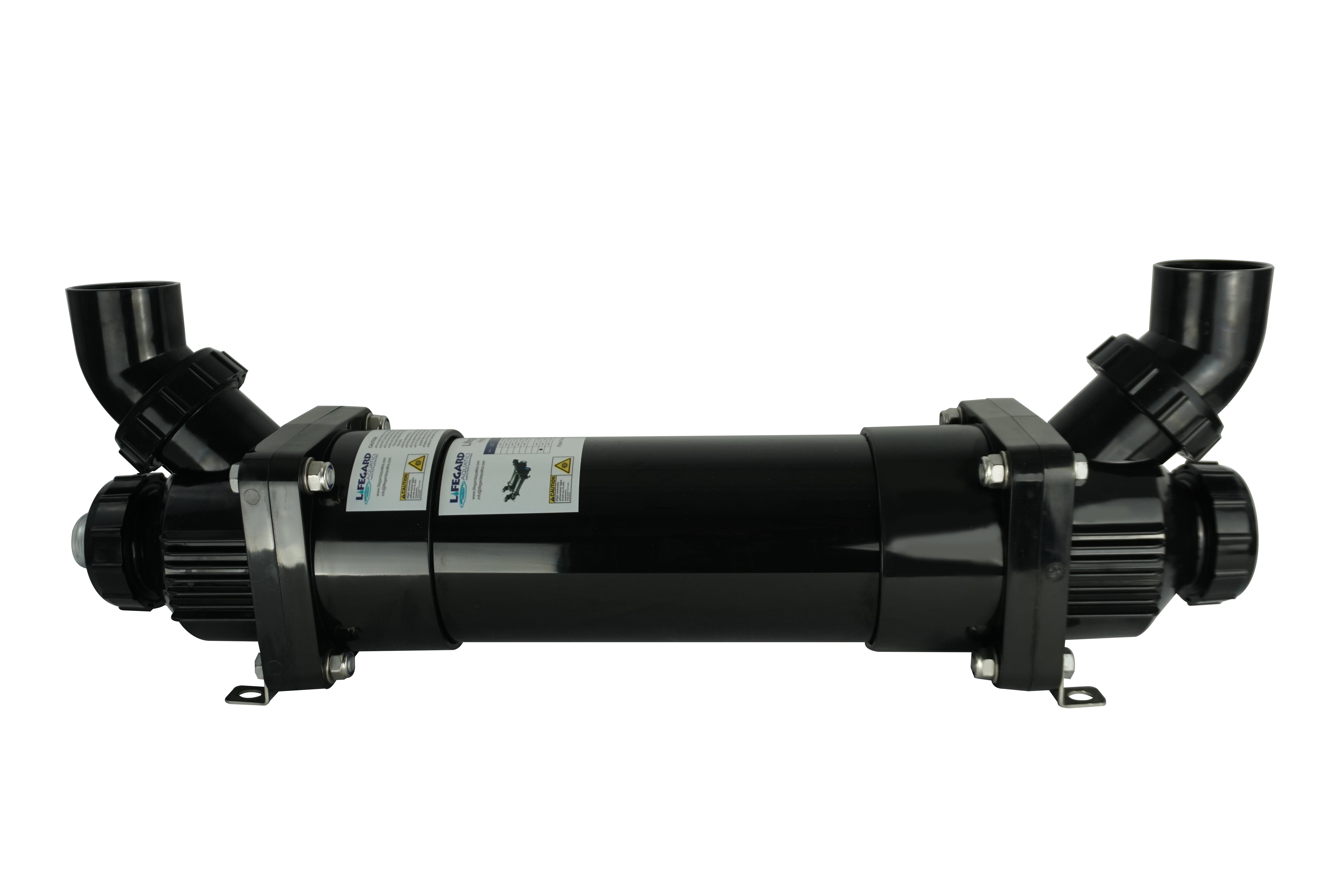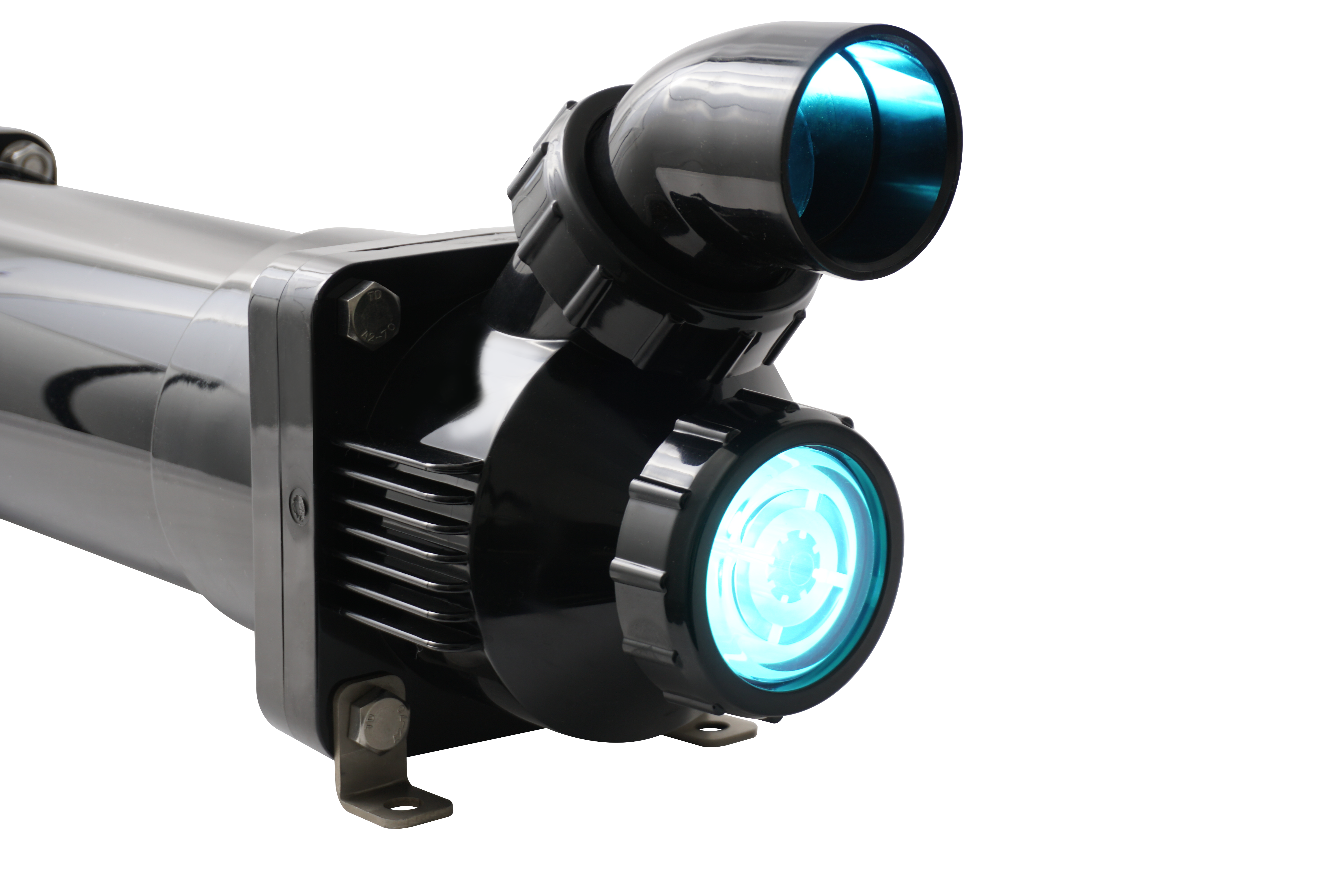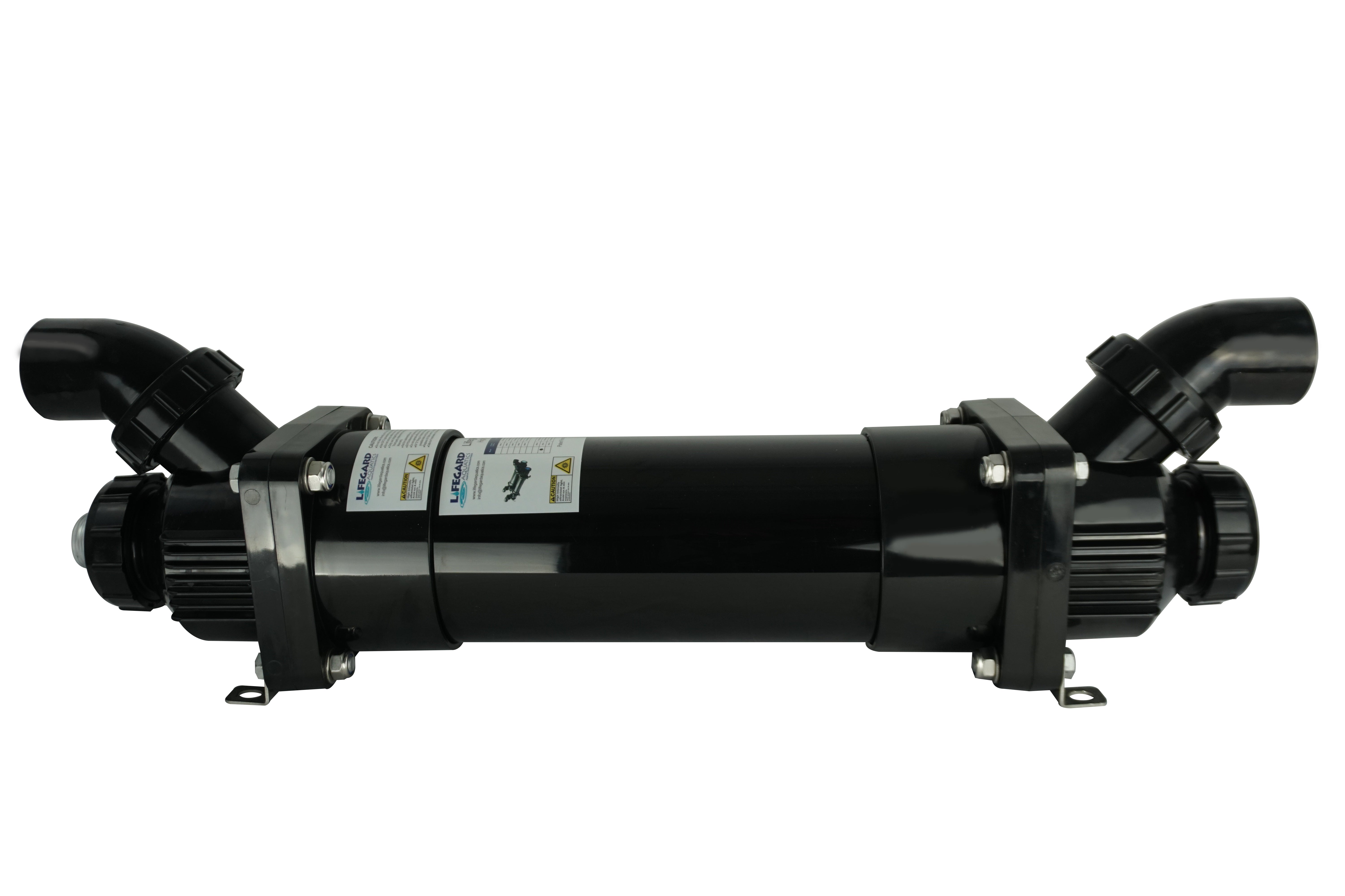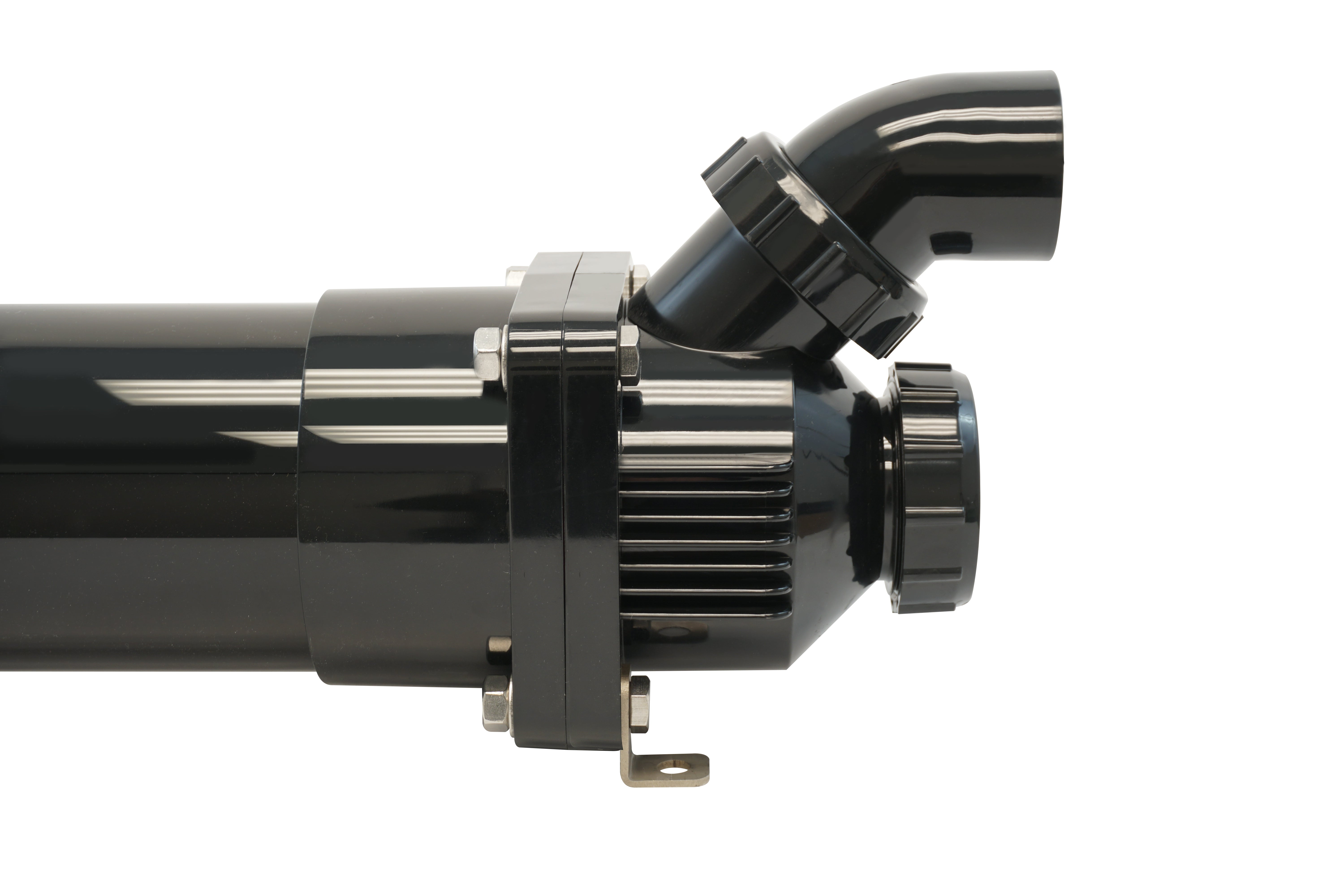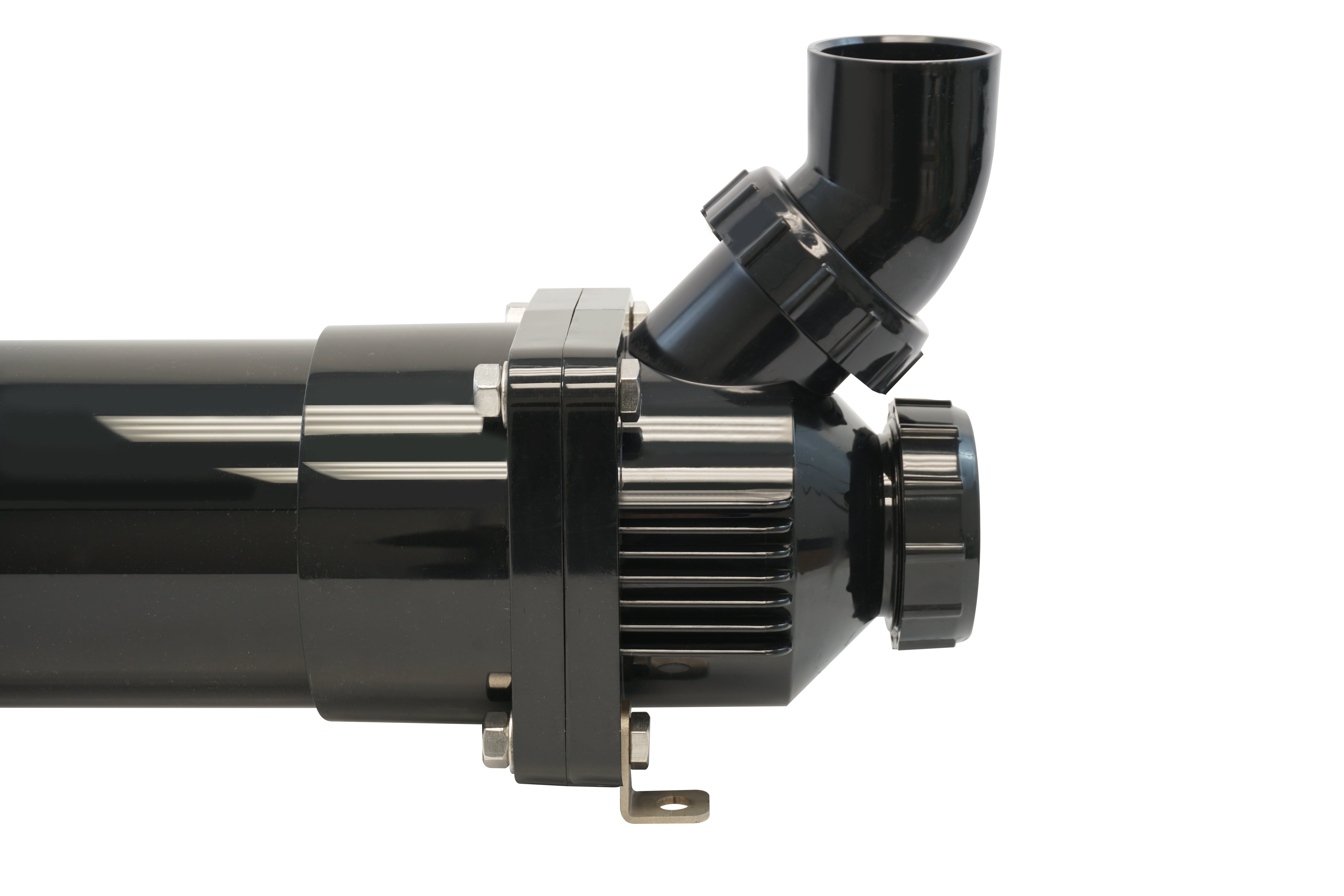 Lifegard Aquatics Pro-MAX™ 90 Watt Amalgam Bulb UV Sterilizer in 5" Housing, featuring a patent-pending, flow-through design with less restrictive angled inlet and outlet ports requiring less plumbing. This unique design enables easy installation of new or replacement systems as it can be positioned in multiple ways to fit any tight space. Available with 3″ housing in 25, 40, 55, 90 and 120 Watt models and 5″ housing in 55, 90 and 120 Watt sizes. Each Pro-MAX™ features a High Output UV Bulb, Internal Protective Sleeve, and UL Listed Ballast which counts down the number of days until you need to replace the bulb. Maximum Operating Pressure 30 PSI.