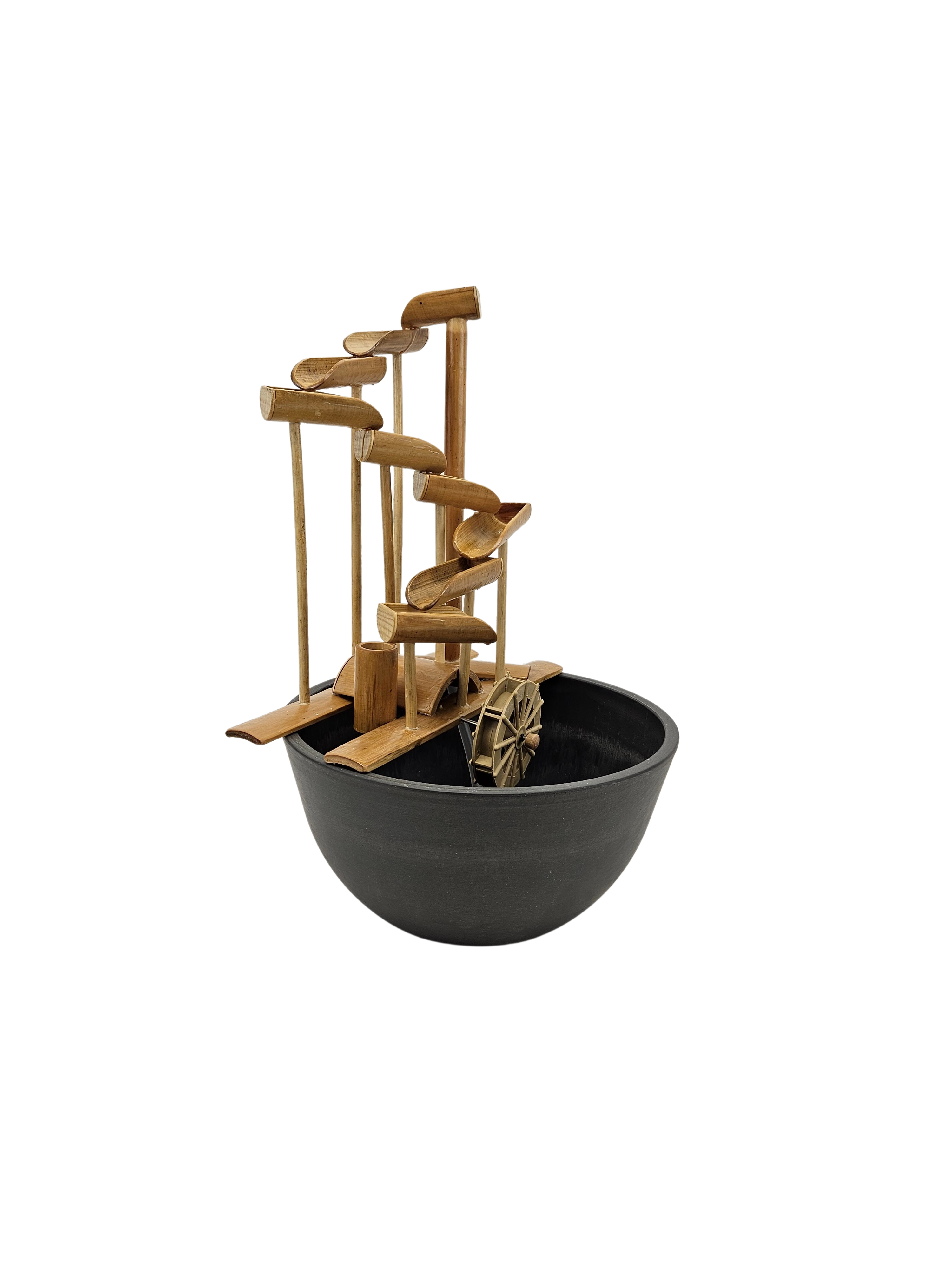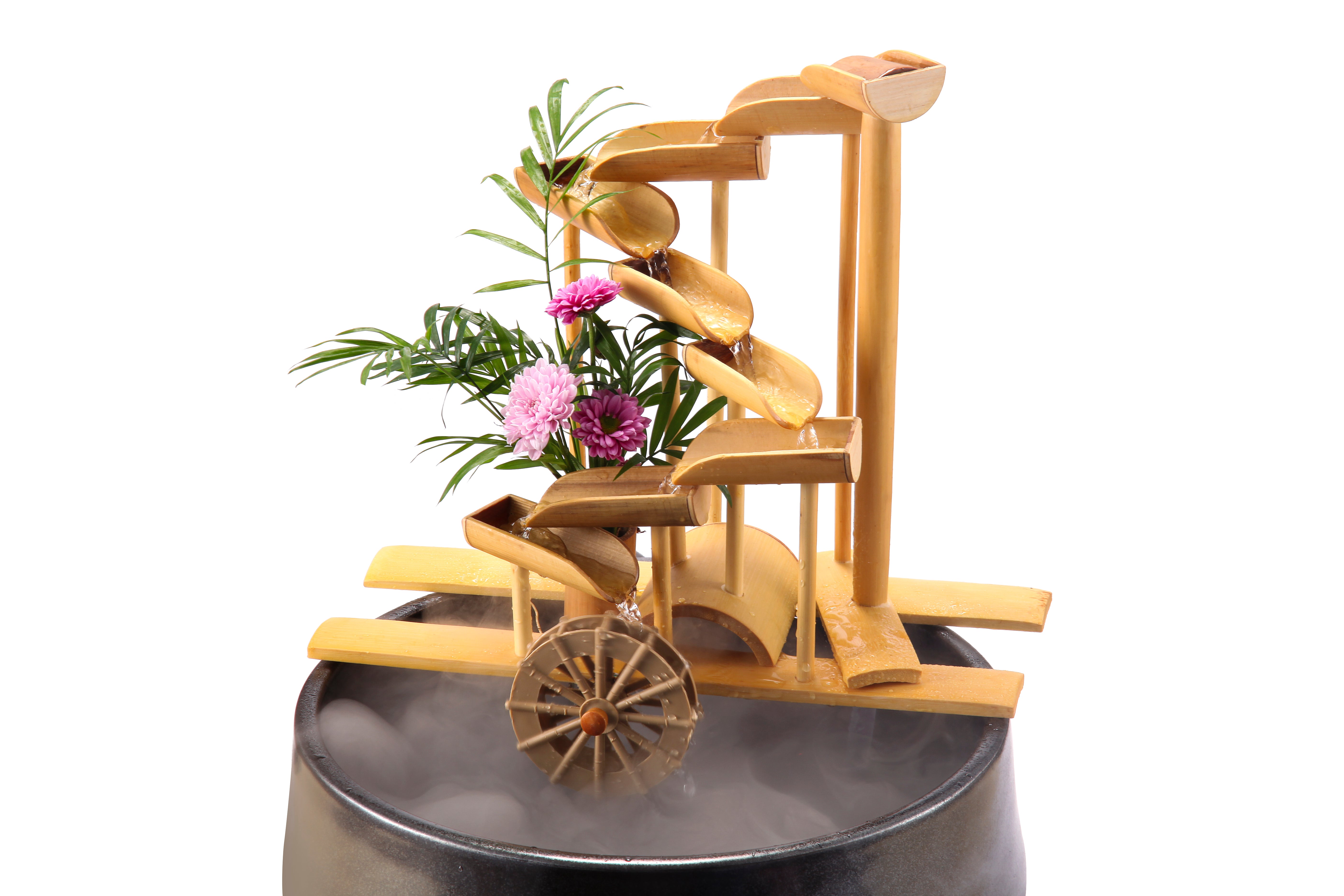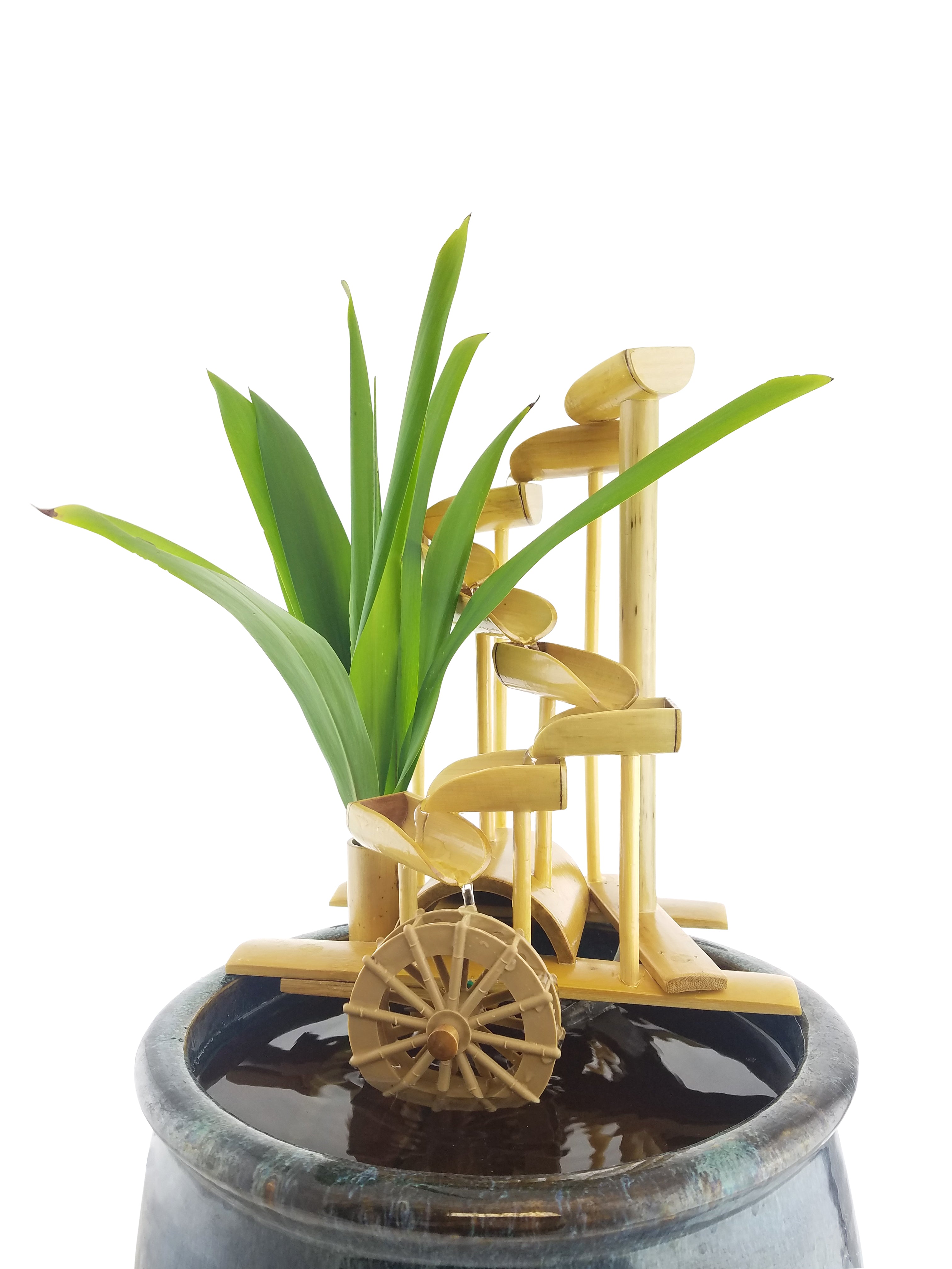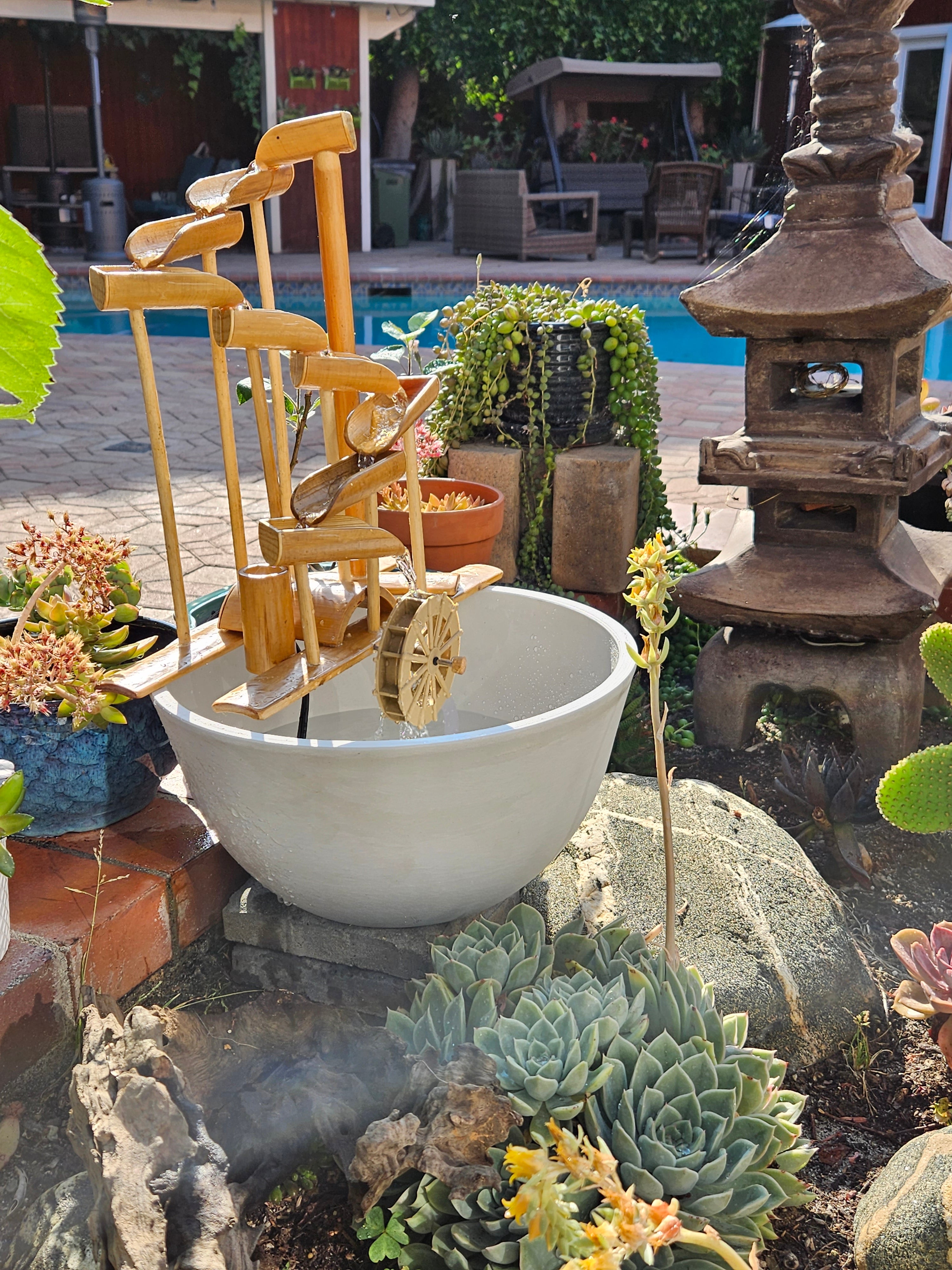Designed to provide serenity and tranquility of the sound of water owing gently indoors, on a balcony or porch, or outside in a landscaped backyard. Choose your favorite location or container and create any look or sound. Some colorful pots shown in photos are for show only.