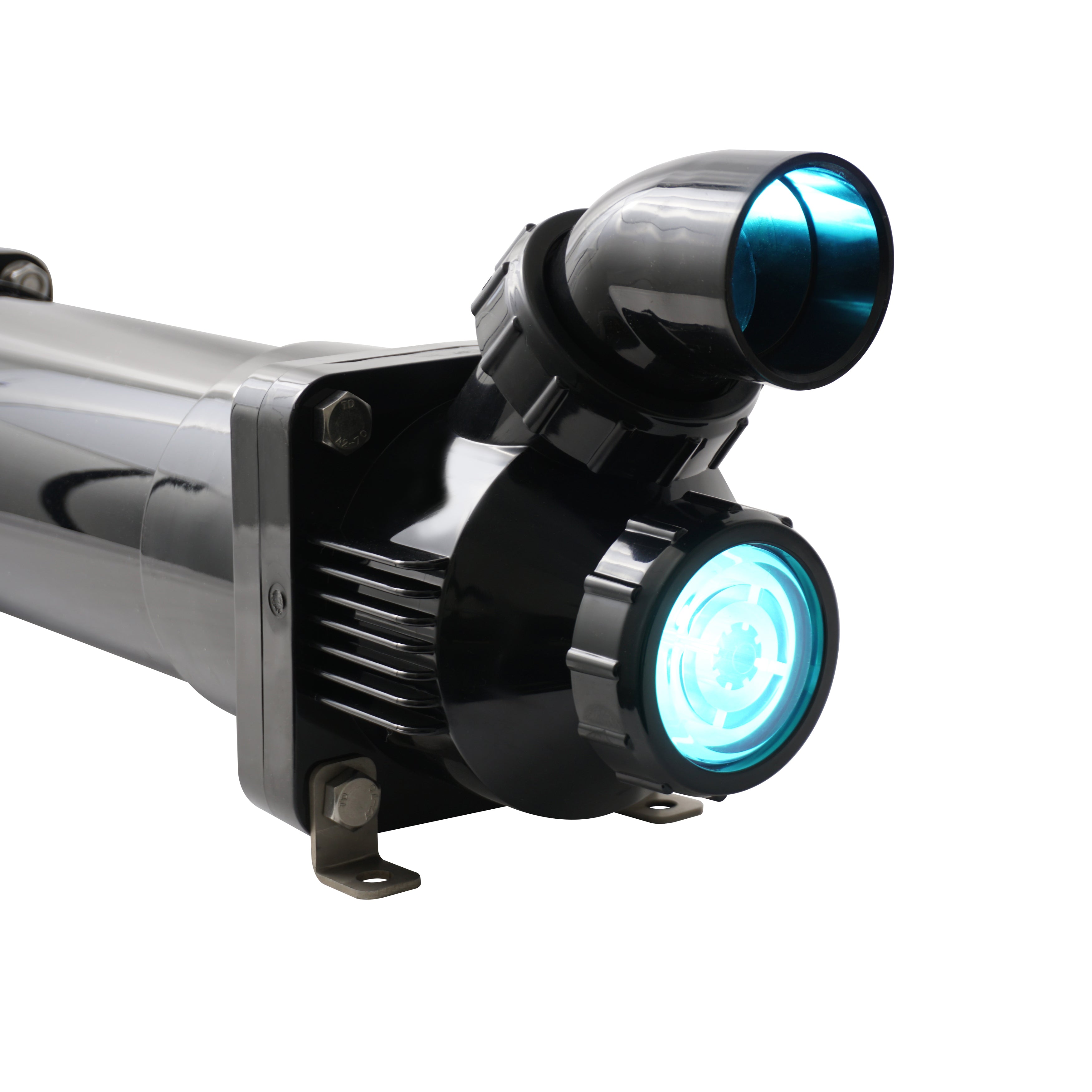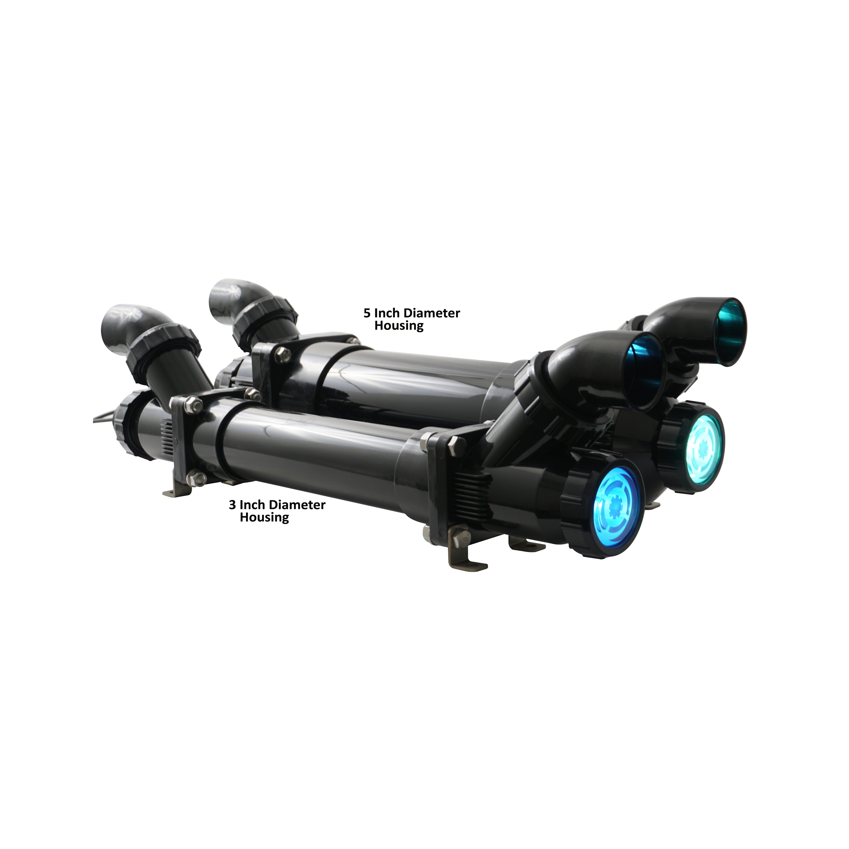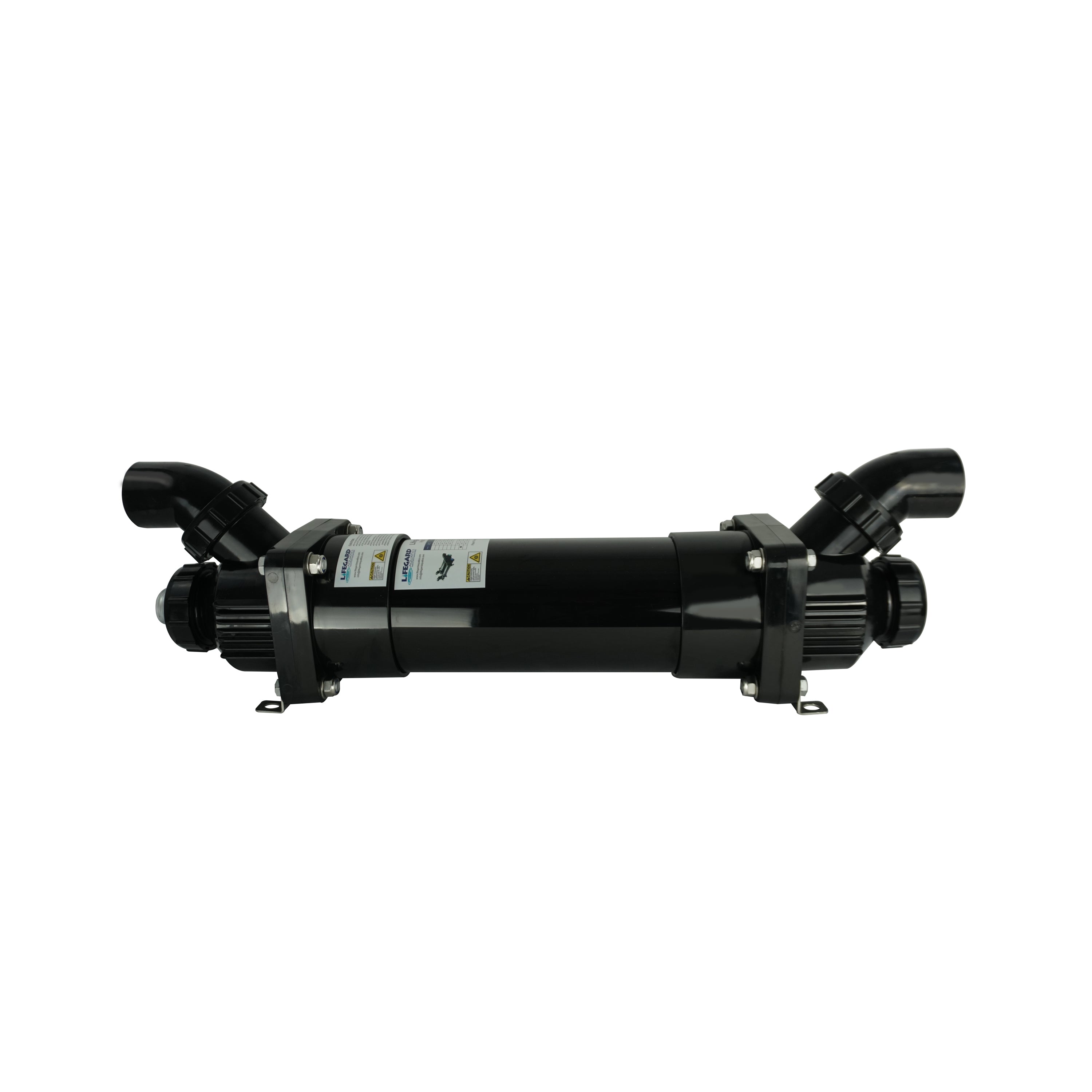 Lifegard Aquatics Pro-MAX™ 90 Watt Amalgam Bulb UV Sterilizer in 5" Housing, featuring a patent-pending, flow-through design with less restrictive angled inlet and outlet ports requiring less plumbing. This unique design enables easy installation of new or replacement systems as it can be positioned in multiple ways to fit any tight space. Available with 3″ housing in 25, 40, 55, 90 and 120 Watt models and 5″ housing in 55, 90 and 120 Watt sizes. Each Pro-MAX™ features a High Output UV Bulb, Internal Protective Sleeve, and UL Listed Ballast which counts down the number of days until you need to replace the bulb. Maximum Operating Pressure 30 PSI.
