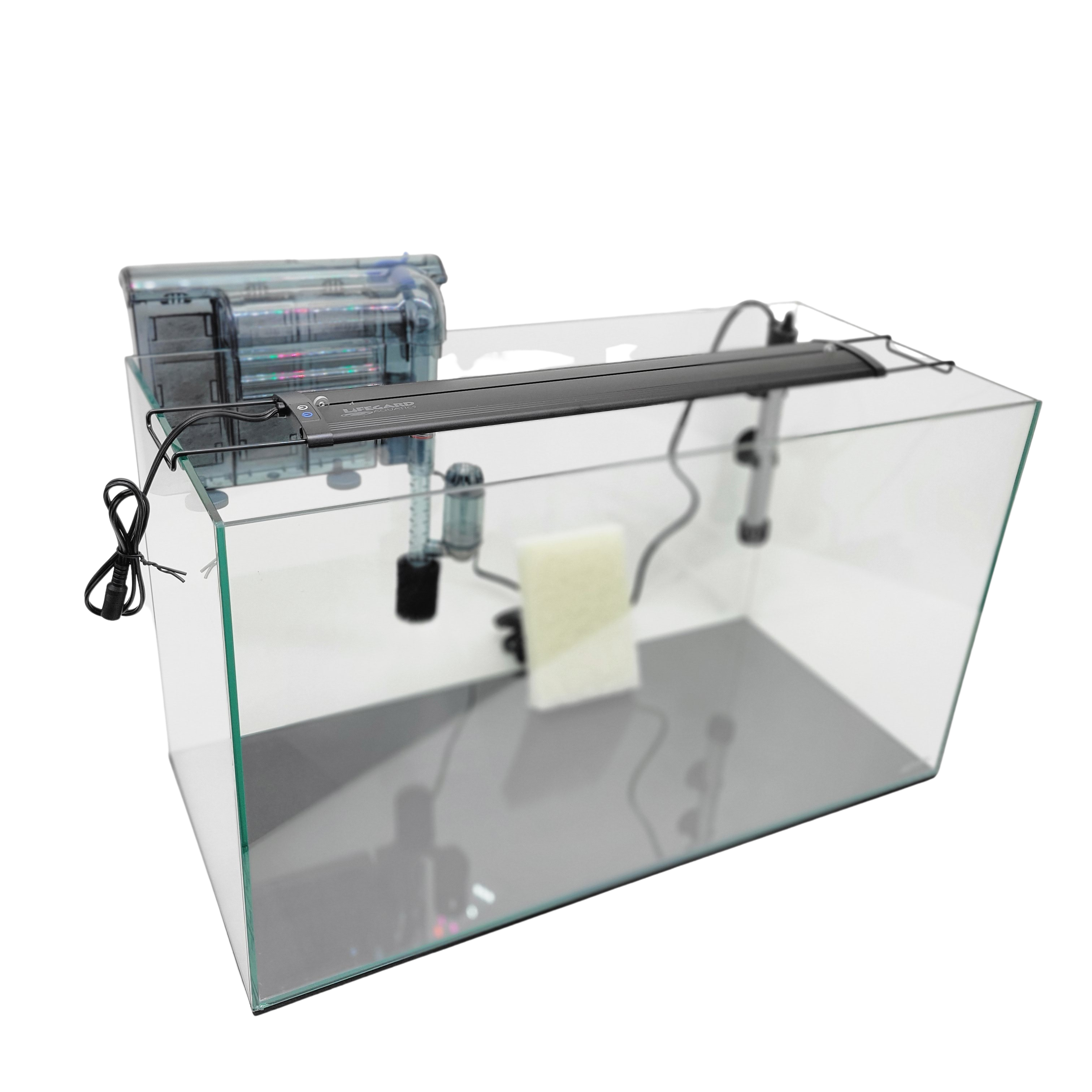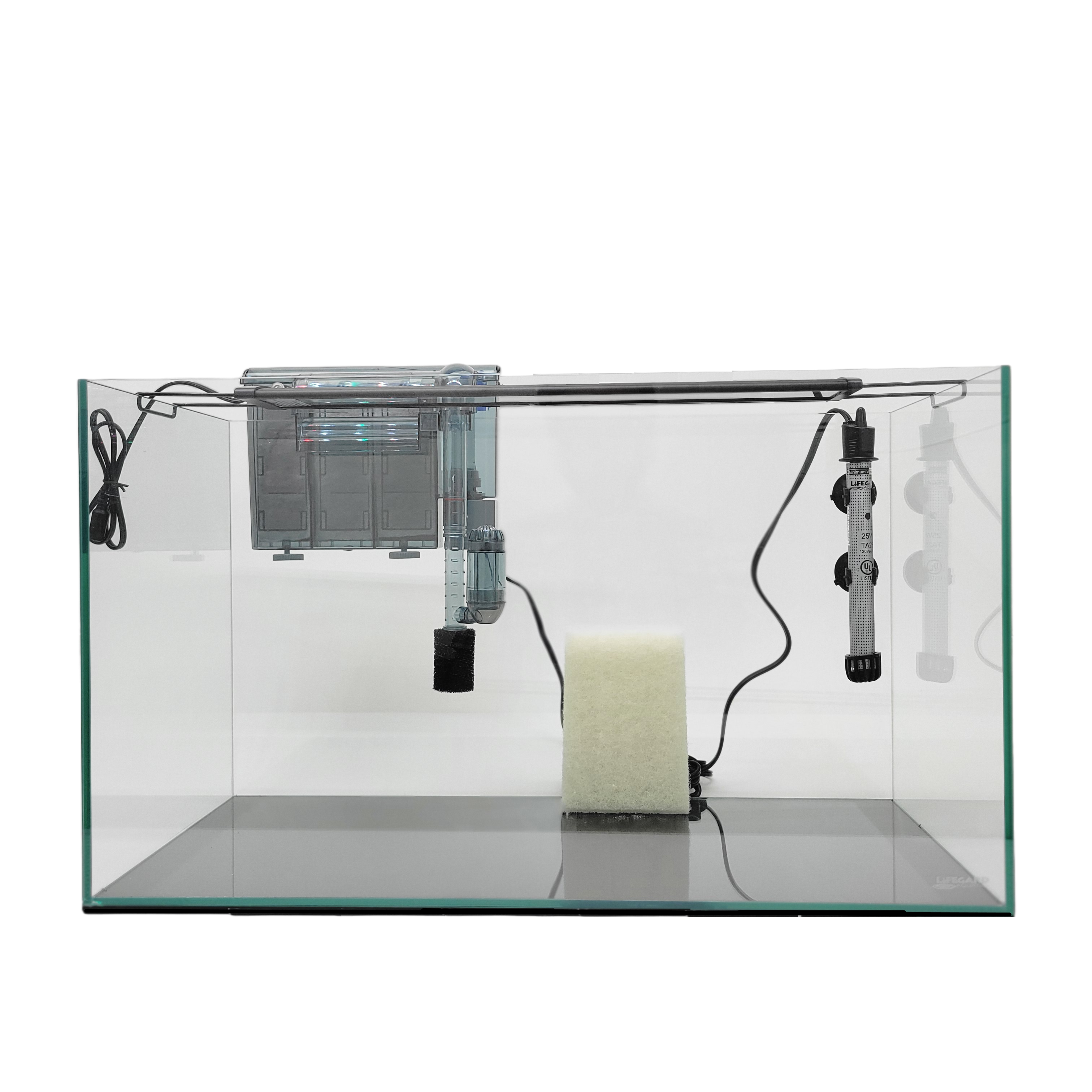 LIFEGARD® 15 Gallon Clear Glass Rimless Aquarium Kit - Includes: Full Spectrum LED Light, Triple Hang-On Slim Low Profile Filter, Heater and a Algae Scrub Pad