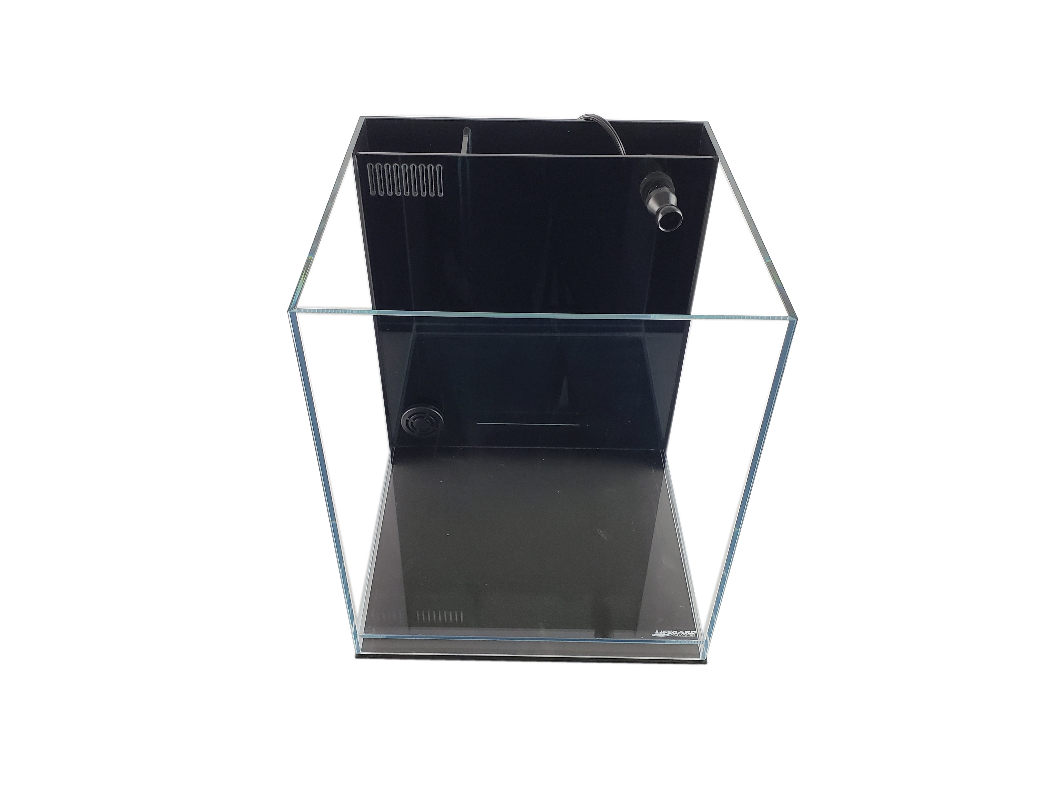 Aquarium includes UL Listed Heater, Full Spectrum LED Light, Algae Pad, Low Iron Ultra Clear Beveled Edge Glass, Built-in filter with Quiet One Pump, Mechanical Filter, Multi directional jet and Top or Bottom Drain.