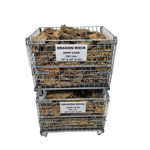 A full Cage of Dragon Ohko Hardscape Rocks sold by weight. The cage is open from the top and also has an option for a side opening for ease of access to pick rocks. Pre-washed for Aquarium Hardscaping or outdoor Gardens Deco.