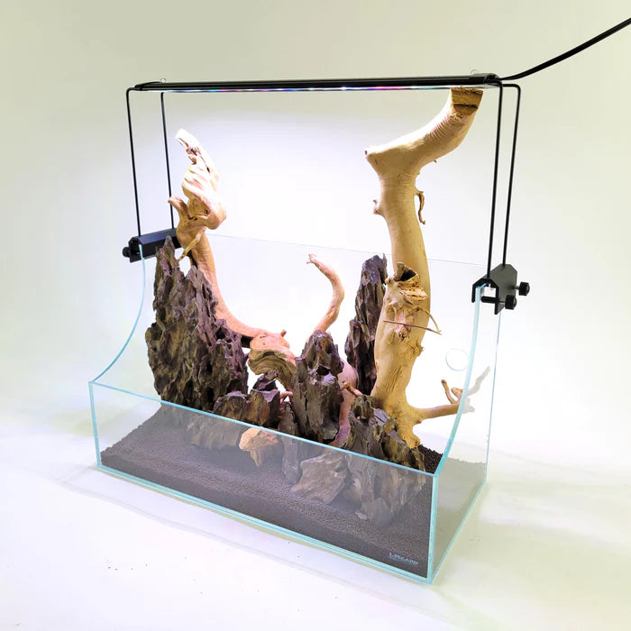 Lifegard Rimless Terrarium / Paludarium is made with Ultra Low Iron 92% crystal clear glass that allows you to easily combine the elements of natural earth landscapes with exotic underwater environments to make breathtaking displays and arrangements. The use of German glue on the joints makes the corners blend into the structure without restricting the view.