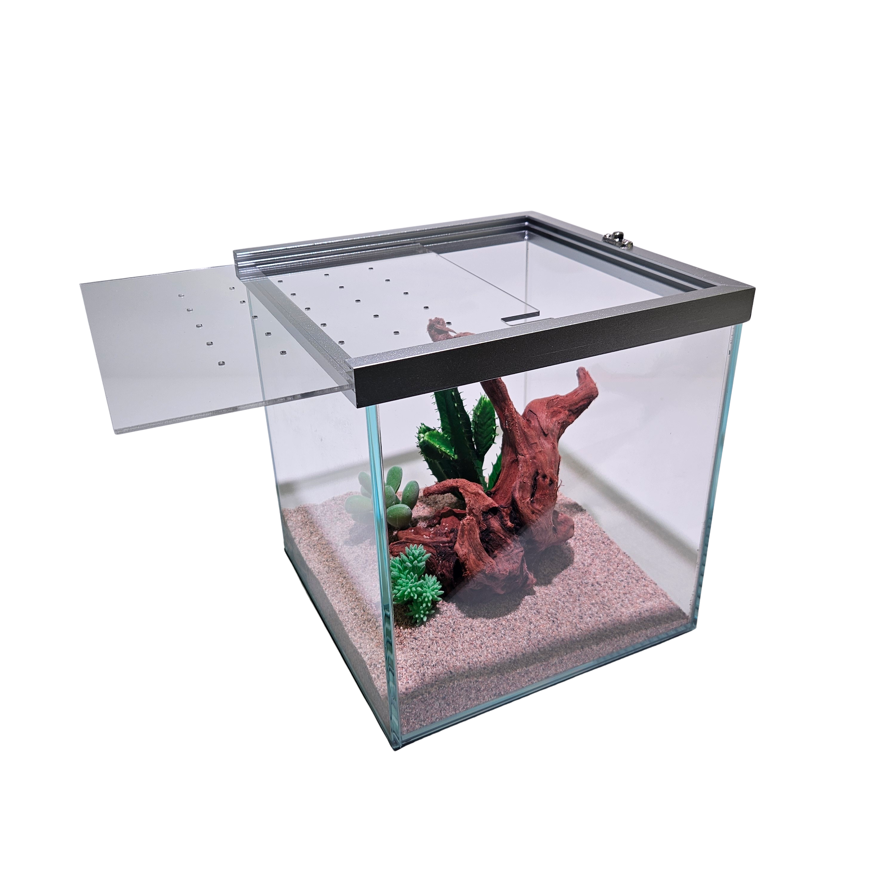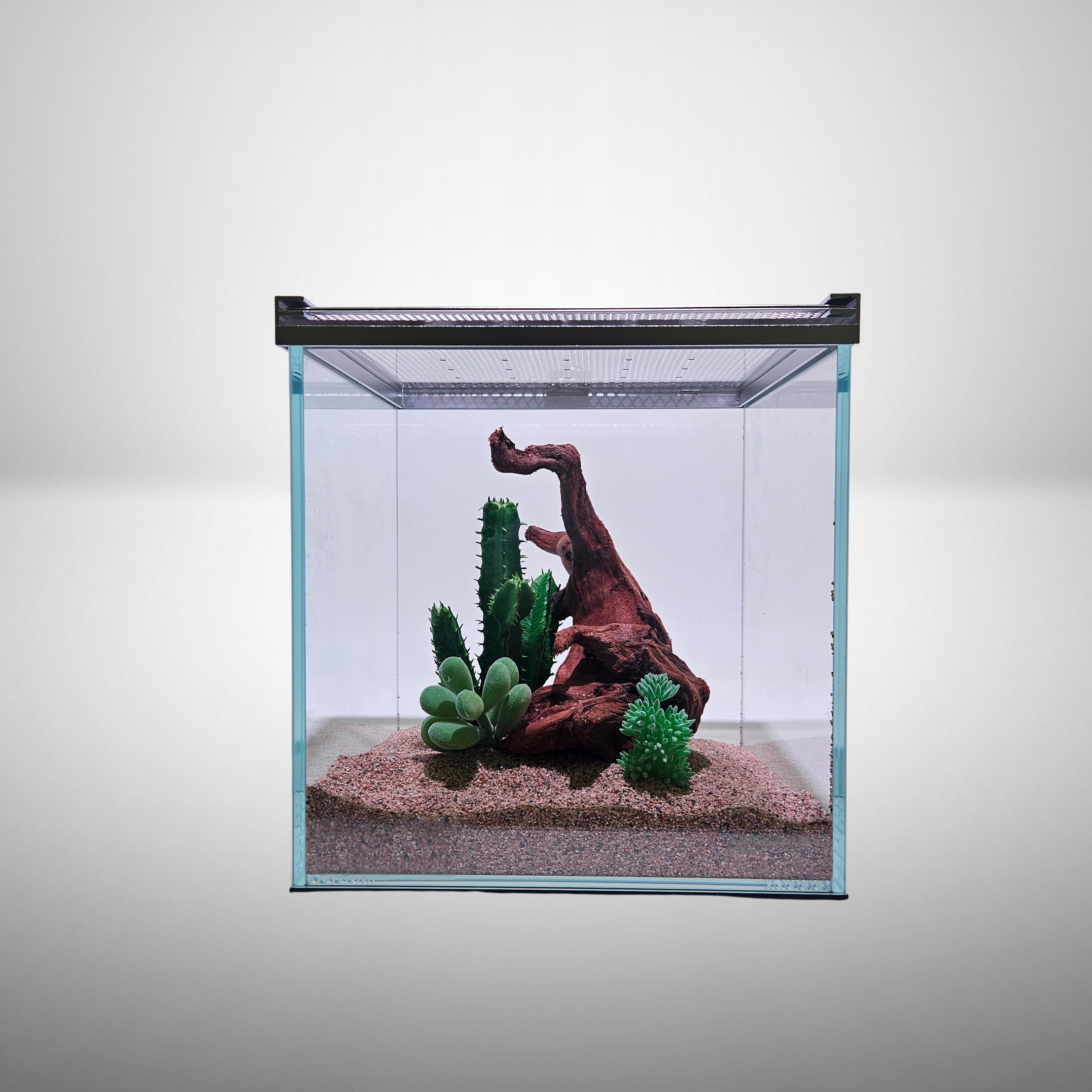 Lifegard Rimless Terrarium is made with Ultra Low Iron 92% crystal clear glass that allows you to easily combine the elements of natural earth landscapes with exotic underwater environments to make breathtaking displays and arrangements. The use of German glue on the joints makes the corners blend into the structure without restricting the view.