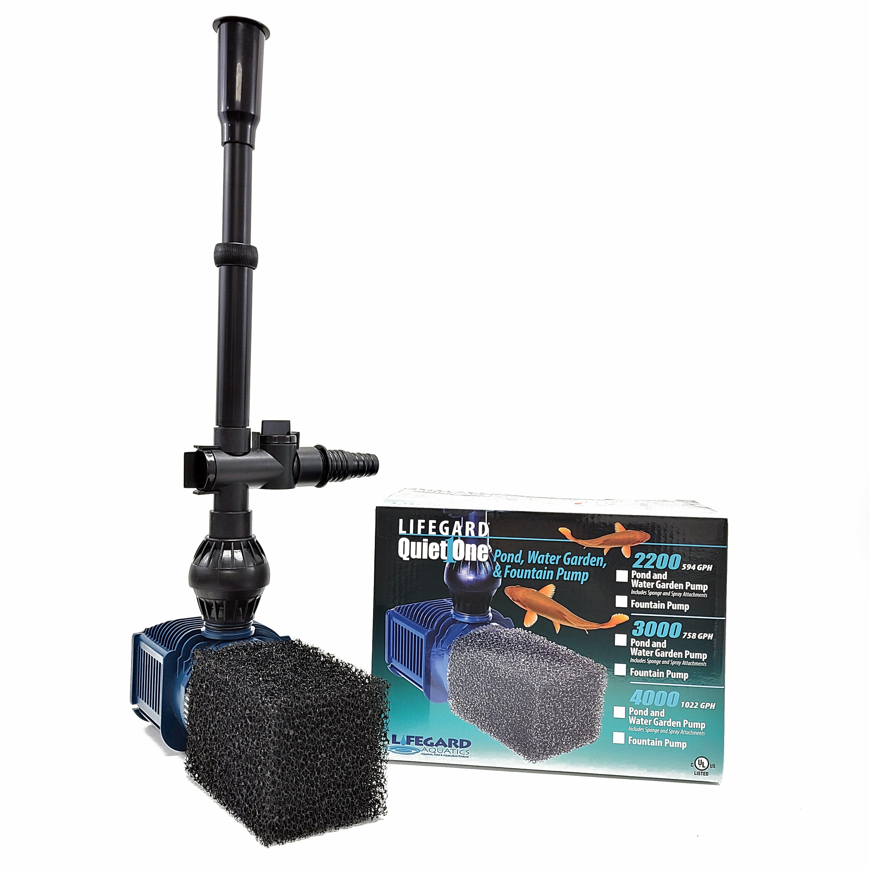 QUIET One MODEL 4000 Maximum Gallons Pond/Water Garden 1229 Part No. R440154 Model 4000 GPH 1022 Max Ht. Ft. 10.3 Watt 49.0 Amp 0.54 Suction Sponge Discharge 1” Tube 120V / 60Hz Quiet One® Pro Series Pond & Water Garden Pumps Even better and quieter than before…as much as 50% less. For Submersible or Dry Applications Extremely quite operation… so quiet you’ll swear it’s not running. ECO-SAV™ generates more power with less energy consumption. Internal recirculation prevents overheating and ejects obstructing debris. Remarkable impeller technology provides combined rotors, improved shaft materials and corrosion resistant bearings. EZ Access Covers allow ease of maintenance of rotor, shaft and removable impellers. Innovative “cooling chambers” provide air-cooling during dry use and water-cooling in wet applications. 20′ Cord with grounded plug for indoor/outdoor use. 120V/60HZ 230V/50HZ models available.