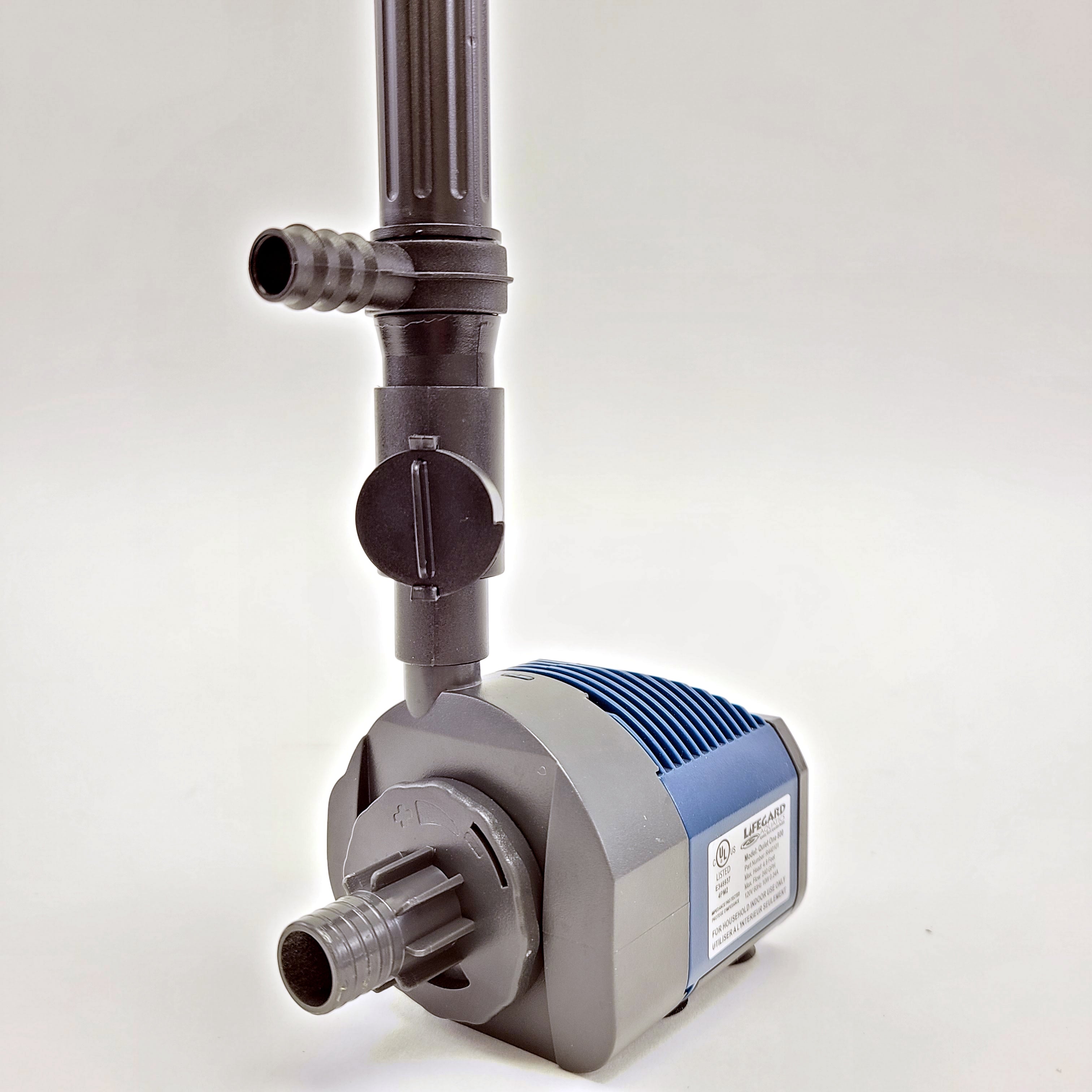 Maximum Gallons Pond/Water Garden 330 Part No. R440151 Model 800 GPH 240 Max Ht. Ft. 4.8 Watt 10 Amp 0.24 Suction Sponge Discharge 1/2” Tube 120V / 60Hz Quiet One® Pro Series Pond & Water Garden Pumps Even better and quieter than before…as much as 50% less. For Submersible or Dry Applications Extremely quite operation… so quiet you’ll swear it’s not running. ECO-SAV™ generates more power with less energy consumption. Internal recirculation prevents overheating and ejects obstructing debris. Remarkable impeller technology provides combined rotors, improved shaft materials and corrosion resistant bearings. EZ Access Covers allow ease of maintenance of rotor, shaft and removable impellers. Innovative “cooling chambers” provide air-cooling during dry use and water-cooling in wet applications. 20′ Cord with grounded plug for indoor/outdoor use. 120V/60HZ 230V/50HZ models available.