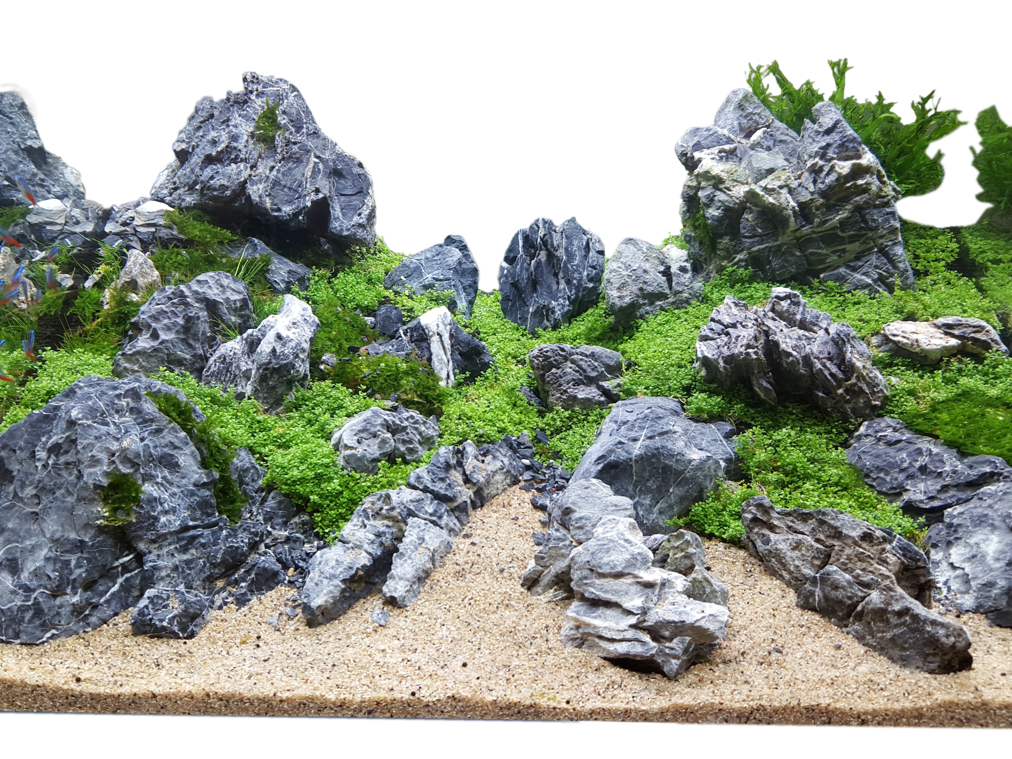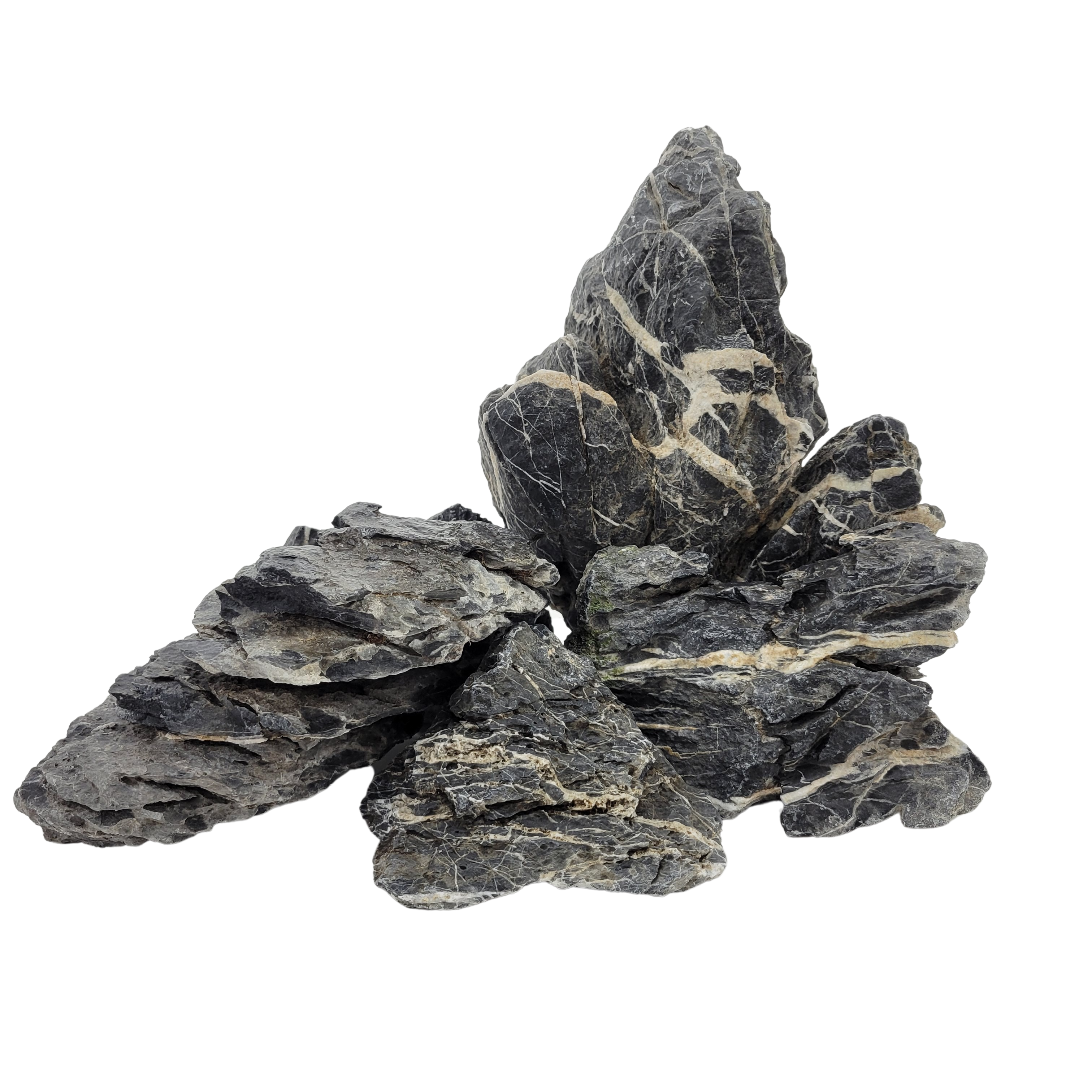 Seiryu stone is one of the most exotic and bold aquatic friendly stones that is very easy to setup. Its shades of grey with a verity of curves, crevices and cuts undoubtedly make it one of the most popular hardscape stones available. The jaded edges and textured crevices add endless details in these stones for anyone to easily support plants and create a natural looking aquascape.