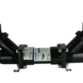 With the development in manufacturing techniques and technology LIFEGARD® Aquatics has really innovated its UV line with the introduction of the Pro-MAX Amalgam Bulb UV Sterilizer in 3" and 5” diameter Housing. Featuring a patent-pending, flow-through design with less restrictive angled inlet and outlet ports requiring less plumbing, less resistance and greater flow. This unique design enables easy installation of new or replacement systems as it can be positioned in multiple ways to fit any tight space. Available with 3″ housing in 25, 40, 55, 90 and 120 Watt models and 5″ housing in 55, 90 and 120 Watt sizes. Each Pro-MAX™ features a High Output UV Bulb, Internal Protective Sleeve, and UL Listed Ballast which counts down the number of days until you need to replace the bulb. Maximum Operating Pressure 30 PSI.
